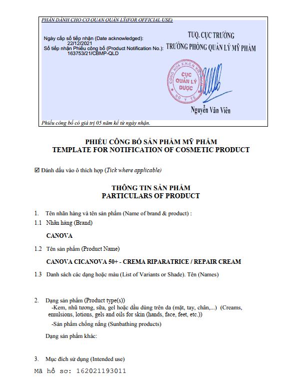 SẢN PHẨM ĐÃ ĐƯỢC ĐĂNG KÝ LƯU HÀNH TẠI VIỆT NAM