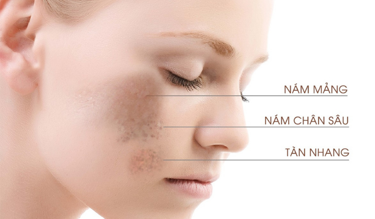 - Nám sâu: là tình trạng đốm lấm chấm trên bề mặt da. Khi hình thành chân nám rất nhỏ, lâu dần chân nám càng ăn sâu xuống dưới da và lan rộng nhanh trên bề mặt.