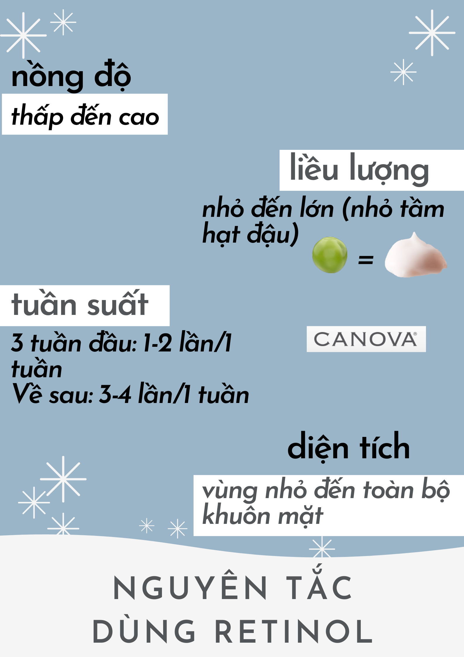 Dùng Retinol từ nồng độ thấp đến nồng độ cao với liều lượng nhỏ đến liều lượng lớn